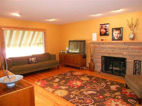 Move right into this spacious ranch in desirable Wicker Park Estates. As you enter the foyer area notice the beautiful hardwood floors throughout that lead to the warm living room. Relax and enjoy the wood burning fireplace. You may also view the Fireplace from the open dining room. Kitchen comes equipped with stainless appliances including the upgraded 36'' 5 burner stove. Off the kitchen relax on your 3 seasons porch. Down the hall are all 3 nicely sized bedrooms that all come with California Closets. Basement has an enormous Family Room that has a wet bar with granite counters, Built ins, a beverage refrigerator. Sit down next to the newer gas fireplace that is made with flagstone. There is a sitting area with a closet that can be easily converted to a 4th bedroom. It also has a bath with slate tile in shower. Other features include: Custom Wood Blinds, Newer 90% high efficiency furnace, 50 gal HW, Newer Roof, Cement Side Drive, 2.5 car garage with 2 overhead doors.
