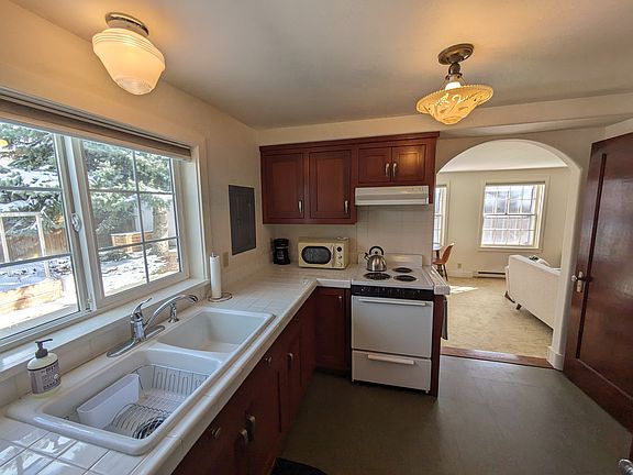 This Art Moderne-style guest house is a mini version of The Historical Graham House, which was built in 1942. It's located in the historic east side of downtown Kalispell and is a very unique home - it's one of only a few Art Moderne homes in the entire state of Montana!