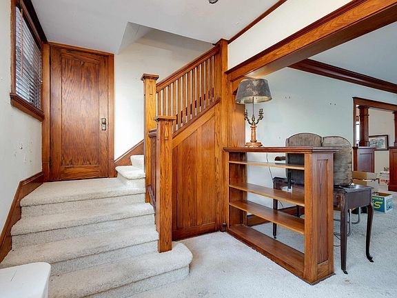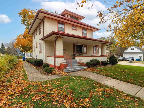 Iconic DeWitt, IA home for sale! This magnificent beauty has so much potential with the original woodwork from 1914, spacious rooms, hardwood floors under much of the carpet and that classic charm throughout! The main floor is grand with a large eat-in kitchen, formal dining room with solid wood built-ins, a sunroom, and great room with large windows overlooking the large front porch. Upstairs you will find a full bathroom and 4 generous bedrooms with ample closet space and a cute enclosed upper level porch. The walkup attic could be finished for more living space or offers great storage AND a full basement with a full bathroom, workshop and laundry area. The vintage bar in the basement stays with the home. Large lot and oversized 2 car garage, too! New steel roof/gutters/downspouts. Home is being sold as-is, where-is--needs some TLC. Cash and conventional financing only.
