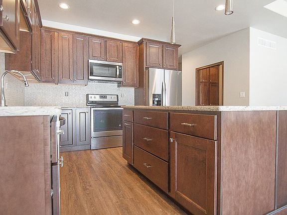Another quality build by Mellinger and Sons, this 3 bedroom, 3 bath zero lot features maple kitchen cabinets, large island, quartz countertops, under cabinet lighting & SS appliances. The open floor plan provides a spacious living room w/tray ceiling & dining room leading to 14x14 covered patio w/privacy wall. Master bath features double sinks, w-in closet leading to ML laundry w/sink and storage. 873 SF finished in the LL includes a family room w/ wet bar, bedroom, full bath, storage room & storm shelter.