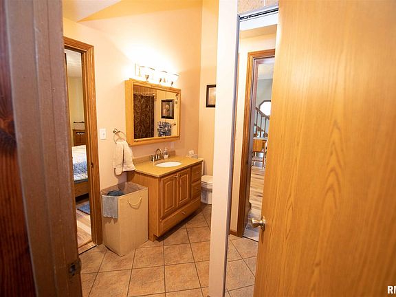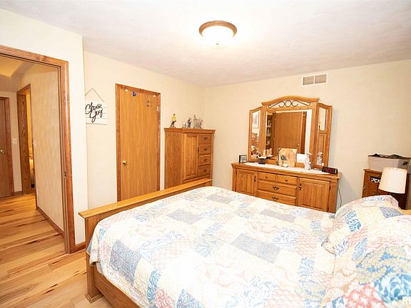 Classic, Modern Farmhouse home for sale in Erie IL! This 4 bedroom 2 bathroom home features beautiful new engineered hardwood floors, updated kitchen with subway tile backsplash, and main level laundry. The living room features 2 bow windows overlooking the large corner lot. The main floor bathroom has access from master bedroom and hallway and is tiled and features a jet tub. The 2nd main floor bedroom is currently being used as an office. Upstairs you will find 2 more bedrooms and a lofted living area great as a toy room, 2nd living room, or additional work form home space. Don't forget all of the outdoor features here! Wrap around porch to enjoy this summer, attached 2 car garage with workshop space, 1 car bonus garage, finished off with a brand new deck and firepit for chilly spring and summer nights. Don't miss out on this beautifully maintained home - looking for it's next owners to enjoy!