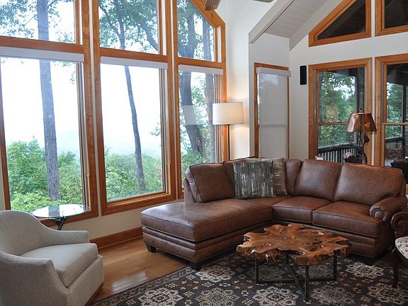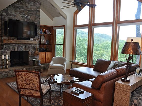 Lock and leave like a condo with an HOA fee to take care of your yard and some house maintenance. Four bedroom areas with four full baths makes this a great place for guests. The screened porch with the fireplace and outdoor cooking area is a great place to relax and enjoy the long range mountain views. This home sits at the end of the neighborhood so has complete privacy when you are on your lower deck or your porch. Fully furnished with the exception of personal items. A car, a membership and a new golf cart are negotiable with an accepted offer.