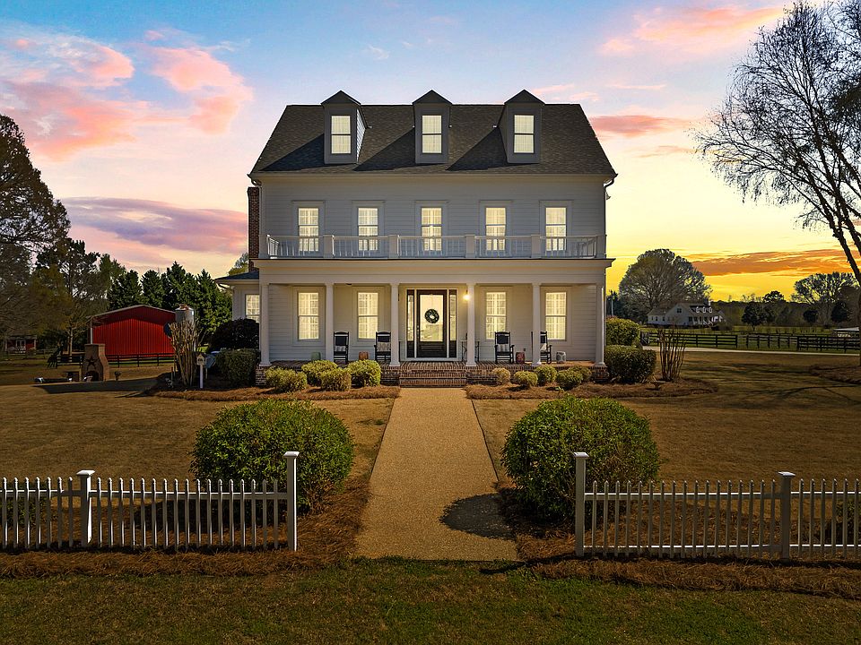 This stunning southern architecture home is situated on over 13 acres of picturesque land in the highly sought-after Senoia, GA. With its classic design and modern amenities, this property offers the perfect blend of southern charm and contemporary living. ~~ The home features a spacious and open floor plan with ample natural light that creates a warm and inviting atmosphere. It boasts heart pine floors, high ceilings, and custom finishes throughout. The elegant foyer staircase makes a stunning focal point as you enter the home. A sitting room or library is opposite the large formal dining room, where memories will certainly be made while gathering around the table and overlooking the sprawling front yard and pasture. A planning station/office is tucked just behind the gourmet kitchen, which is equipped with stainless appliances, custom cabinetry, leathered granite countertops, and a center island that is perfect for entertaining. A wood-burning brick fireplace creates a cozy family room. A rear staircase enters an unfinished, but heated and cooled space, ready for completion or perfect for storage as is. Feel the nostalgia as you walk on the brick paver flooring in the friend's entry, back hallway, and drop zone area. Upstairs are three secondary bedrooms each with an en suite bath. The owner's suite is spacious and includes a sitting area. A renovated primary bath has a free-standing tub, double vanities, and tiled-in shower. The walk-in closet with storage island will impress the pickiest of buyers. ~~ The property features several outdoor living spaces, including a charming front porch where stunning sunset views impress. A screened-in patio that overlooks both an outdoor fireplace and a firepit is the perfect spot to enjoy wildlife and nature sounds as well as sights of the majestic oaks on the property. A walk down to the dock will surely allow for a catch in the stocked pond. The backyard is perfect for hosting large gatherings or enjoying a peaceful afternoon in the sunshine. ~~ The property also includes a 2-stall barn with tool and tack room and can be used for storage or workshop. A large pole barn solves the need for tractor and equipment storage. The fenced garden area along with a storage shed for gardening tools is ready for flowers, vegetables, or additional livestock. With its convenient location and breathtaking views, this property is truly a southern gem that cannot be missed. *NOTES* Two adjacent land tracts are available for sale as well. One tract is 13.9+ acres (Parcel ID: 169 1303 021) and the other is 14.9+ acres (Parcel ID: 169 1303 022). Contact the Listing Agent for more information.