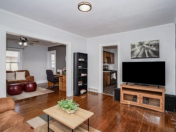 Sitting on a sunny corner lot just steps from downtown Story City, this storybook cottage is full of personality, space, and unexpected perks for the price. With 3 bedrooms, 2 bathrooms, and tall ceilings that bring in light and volume, the home feels both open and cozy at once. From the moment you arrive, the charming stucco exterior and welcoming front porch set the tone. Inside, you'll find hardwood floors stretching across the main level, a spacious living room, and a surprisingly large kitchen with updated cabinetry and room to gather. A half bath on the main level adds convenience, while the upstairs layout offers two additional bedrooms and a full bath that's been thoughtfully updated. The basement is clean, functional, and ready to be finished if you want even more living space down the road. Outside, the fully fenced backyard and expansive back deck create a private retreat for pets, play, or summer BBQs. Tucked in a quiet residential pocket with walkability to schools, parks, and downtown favorites, this location offers small-town charm with quick I-35 access for commuting. Whether you're buying your first home or looking to downsize with style, this one checks a lot of boxes—and then some.