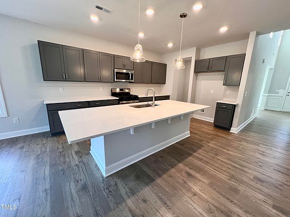 Contact on-site agent Kristin Dyrdal 786-239-5822/ kristin.dyrdal@dreamfindershomes.com or Yelena Hornlein 919-896-2305/ YelenaZvereva@dreamfindershomes.com for more details on availability. Desirable Jessamine floor plan! Rocking chair front porch - enter into a grand 2 story foyer. Kitchen features huge island with quartz countertops & gas appliances! Spacious walk-in pantry with MDF shelving. Bedroom on main floor - perfect for office space or guest space! Laminate flooring throughout first floor. Oak Tread Stairs with open wood rails lead to an airy landing and loft overlooking entry. Spacious owner's suite and on-suite with a dream sized closet. 2 additional bedrooms up with full walk-in closets. Baths and laundry feature tile flooring. Amazing amenities!! 1st year of pool/water park included as paid membership. Public access to dog park, splash pad, playground, walking trails park, and walking distance to delicious local restaurants & nightlife. Located next to Knightdale Station Park, this community has endless opportunities for outdoor activities & community gatherings!