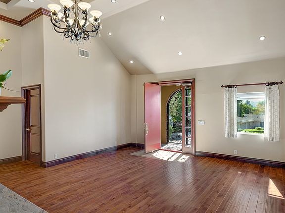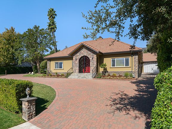 Welcome to this one level La Canada Flintridge family home. 5 bedroom, 5 bathroom home with cathedral ceiling on one of La Canada Flintridge's favorite streets. The home has easy access to freeways and is close to all the shopping and restaurants in the city. Four of the bedrooms are suites. All the bedrooms have large closets and the master has a walk-in. The living room and family room with wood mantle fireplace and crown moldings are the ideal space for entertaining. In the backyard there is an updated pool and spa with a waterfall. Pull in through the gate to a 2 car garage with attached storage room or leave your car parked in the circular driveway which has a separate parking space with a 110/220 electrical outlets for vehicle charging.