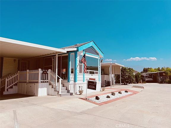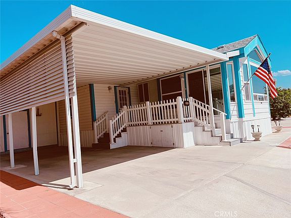 Escape to your dream home in the heart of Heritage Ranch, an exclusive 55+ age-qualified community, where you not only own the land but also enjoy the incredible perks of a Green Belt location with mesmerizing mountain views. This home offers two bedrooms, one of which is generously proportioned, providing endless possibilities. Use it as a loft, a hobby room, or a spacious guest retreat your imagination is the limit! The full bathroom is complete with a soothing shower and a relaxing tub for a perfect retreat after a long day. The living room flows seamlessly into the kitchen, creating an open and airy atmosphere perfect for entertaining or enjoying cozy evenings at home, with a stunning built-in facade entertainment center, adding a touch of sophistication to your space. High ceilings lend a modern flair, making this area perfect for relaxation and entertainment. The well-equipped kitchen features a full-sized refrigerator, built-in microwave, and a stove with an oven, catering to all your culinary needs. This home also has an outdoor shed provides additional storage space, perfect for stowing away gardening tools or outdoor equipment. This home offers a beautiful porch flowing to a large carport. This home is a move-in-ready haven: No need to lift a finger; everything is prepared for you to begin your new chapter. Enjoy the convenience of community living with HOA dues that cover water, trash, sewer, internet, cable, and access to the spectacular CLUB HOUSE. Dive into the large pool, unwind in the spa, engage in friendly competition in the card room, or stay active in the gym. The clubhouse offers a banquet room for special gatherings, ensuring there's always something exciting happening in your new community. This beautiful home offers the perfect blend of tranquility, community, and modern living. Don't miss your chance to make it yours. Come by and experience the magic for yourself!