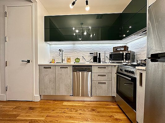 Modern Design ; Luxury Finishes ; The kitchen is outfitted with top-of-the-line appliances, including a dishwasher and microwave, and the unit has a modern and unique design, making it the perfect place to call home. Additional features include a built-in Bluetooth speaker system, central heat and air, hardwood floors, and stylish light fixtures. The building offers a variety of amenities including a state-of-the-art gym, rooftop lounge with stunning city views, and more. The management is friendly and responsive, and the building is well-maintained. Some of the great amenities and features for this apartment: - Laundry room - Bike room - State of the art GYM - Gorgeous roof with pristine views - Entertainment Center - Built in Bluetooth Speakers - Lounge/ recreation room - Rooftop Furniture - Virtual doorman - Central heat/ac The location is ideal, with plenty of cafes, restaurants, and grocery stores nearby, as well as quiet streets for leisurely walks! Contact us now to schedule a video tour of this beautiful apartment!