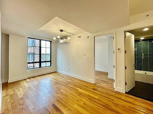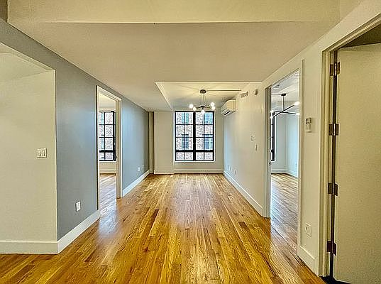 Beautiful modern designed apartment with spacious rooms in this spectacular 2bedroom 1bath. Great airy layout. Enjoy oversized sun-filled windows in all rooms. The kitchen is fully renovated with stainless appliances, and dishwasher. Very Sunny Apt! There is Energy efficient Split unit Central-AC/Heat in every room. Built in Bluetooth speakers in the wall. Building is two years old. Friendly and responsive management. Lots of great building amenities, including a gym, recreation room with tv and a pool table. Plus a rooftop with lounge furniture and pristine views. Great price on a no fee luxury modern apartment in a top of the art building! The building is rent stabilized, no high rent increases. The apartment has a super high quality and luxury vibe. All for a low and great price! - Laundry room - Bike room - State of the art GYM - Gorgeous roof with pristine views - Entertainment Center - Parking available for extra charge Enjoy a walk to the park nearby! Abundance of cafe's and restaurants nearby! Close to 3/4/A/C Trains making commuting a breeze! Call or text now to see a video tour!