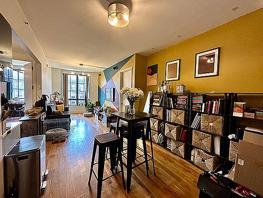 The airy layout, combined with oversized sun-filled windows in every room, creates a bright and inviting atmosphere. The fully renovated kitchen features stainless steel appliances, including a dishwasher, for added convenience. Stay comfortable with energy-efficient split unit central air conditioning and heating in every room and built-in Bluetooth speakers for your entertainment. This state-of-the-art building is just a year old and offers a friendly and responsive management team. Take advantage of the building's luxurious amenities, including a well-equipped gym, recreation room with a TV and pool table, and a breathtaking rooftop lounge with lounge furniture and pristine views. Laundry room, bike room, and a state-of-the-art gym are also available for your convenience. - Laundry room - Bike room - State of the art GYM - Gorgeous roof with pristine views - Entertainment Center - Parking available for extra charge Enjoy a walk to the park, abundance of cafes and restaurants nearby, and easy commuting with close access to trains. Take advantage of this amazing opportunity to live in a no-fee, luxury modern apartment in a state-of-the-art building with a super high-quality and luxury vibe. Parking is available for an extra charge.