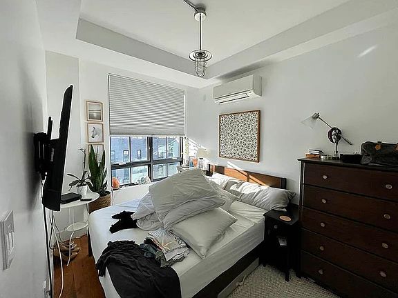 There's a 1 Months brokers fee for this lovely rent stabilized unit Live in style and luxury in this stunning apartment! The airy layout, combined with oversized sun-filled windows in every room, creates a bright and inviting atmosphere. The fully renovated kitchen features stainless steel appliances, including a dishwasher, for added convenience. Stay comfortable with energy-efficient split unit central air conditioning and heating in every room and built-in Bluetooth speakers for your entertainment. This state-of-the-art building offers a friendly and responsive management team. Take advantage of the building's luxurious amenities, including a well-equipped gym, recreation room with a TV and pool table, and a breathtaking rooftop lounge with lounge furniture and pristine views. Laundry room, bike room, and a state-of-the-art gym are also available for your convenience. - Laundry room - Bike room - State of the art GYM - Gorgeous roof with pristine views - Entertainment Center - Parking available for extra charge Enjoy a walk to the park, abundance of cafes and restaurants nearby, and easy commuting with close access to trains. Take advantage of this amazing opportunity to live in a no-fee, luxury modern apartment in a state-of-the-art building with a super high-quality and luxury vibe. Parking is available for an extra charge