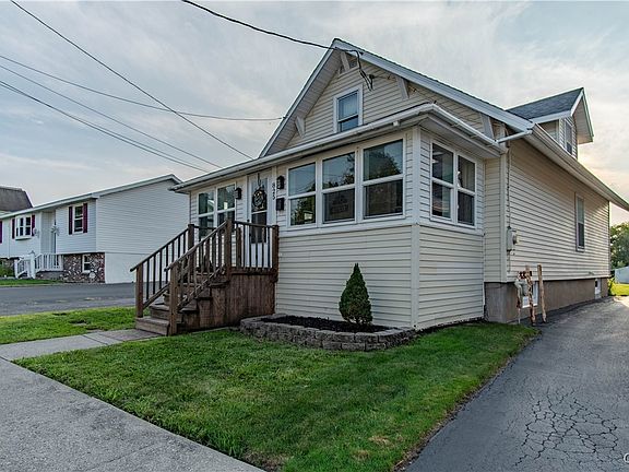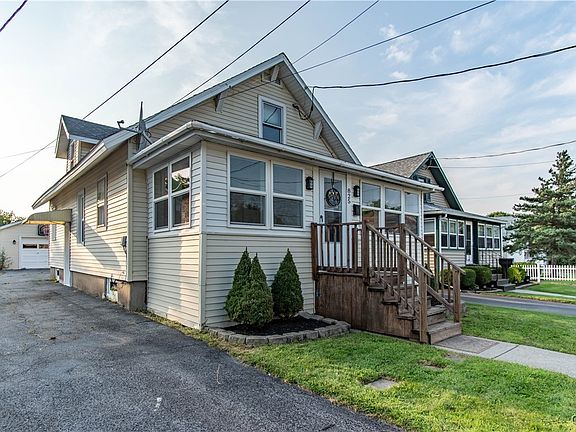 Welcome home to this delightful 3 bedroom 1.5 bungalow nestled in the heart of Watertown. This cozy residence offers a perfect blend of classic charm and modern convenience. As you step into the three season enclosed porch you are greeted by a warm and inviting living and dining space featuring hardwood floors and charming built ins. The modern kitchen has updated appliances. The full bathroom has been updated as well and is located on the first floor with three bedrooms. The upstairs area is a large bonus space with a half bathroom. A detached garage and deep city lot provide room for storage, gardening or space to roam & enjoy the outdoors. Located close to all amenities and a quick commute to Fort Drum! Don't miss out on your chance to own this charming bungalow... schedule your showing today and make this house your new home!