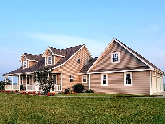 Own a home that feels like a vacation getaway, only 10 minutes from Corning and 15 minutes from Elmira! This custom-built, one-owner cape-cod sits on top of 35 acres and is “park-like” in appearance with a very private back yard, open fields, trails, wildlife, woods with a stream, gorgeous valley views, & a pond with a “beach area” for relaxing/wading. Its hilltop position keeps it in the morning sunshine above the valley fog, & it affords an almost 360-degree view of the sky for nighttime astronomy. The house is also a gem – beautifully maintained w an open-concept living room, dining room & kitchen, and an attached 3-car garage w a mudroom entrance leading directly into the kitchen. Designed for functionality, easy upkeep & one-level living. The 1st floor includes the primary bedroom, a second room that can be an office or bedroom, a third room that can be a den or an additional 5th bedroom, & a sound-insulated laundry room. It has 6” outside walls & weather-star-rated windows. The oversized garage with space above reduces the need for a shed, & numerous closets provide plenty of storage. The covered front & back porches provide protection, & face east & west, enabling views of both sunrise & sunset. The unique bathrooms have separate toilets & showers & single sinks enable extra drawers. The primary bedroom en-suite also has a separate door into the main living area to serve as the powder room for guests, reducing the number of bathrooms to be maintained. A raised bed garden is ready for fresh vegetables to be grown.The basement has been intentionally left unfinished to serve as an inclement-weather recreation area.There’s even a sauna w a beach scene mural for a virtual getaway. Numerous new updates include:Pressure Tank Jun ’13; Roof Aug ’15; LG Washing machine Mar ’15 and Dryer Jul ’16; Submersible well pump Sept ’16; Bosch dishwasher Feb ’17; Owned Culligan water softener Mar ’17; Whirlpool Refrigerator Sept ’17; Kitchen floor refinished Oct ’17; Sauna Nov ’18; Bosch Combi Boiler- on-demand hot water Aug ’20; GE Microwave Nov ’20; Kitchen Aid Double Oven Range Aug ’22. **There is an Accepted offer with a sale contingency until 12/20/2025. 3 day kickout.