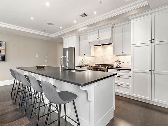 Phenomenal 2 Bed 2 Bath condo on the East side of South Boston, with one car deeded parking and a beautiful interior. This open concept floor plan with hardwood floors throughout makes it perfect to have guests over. Kitchen features an expansive center island with custom cabinetry, a 5 burner Bertazzoni gas range with an overhead fan venting outside, a wine fridge and tiled backsplash. Large master bedroom with a big walk-in custom built closet, leading into an en-suite bath with a marble tiled steam shower. Second bathroom includes a glass enclosed jacuzzi bathtub. French doors off the bedroom leading to a private deck, high above surrounding buildings with views of JFK Library, Marina Bay and Boston Harbor. In unit full sized washer and dryer conveniently located off of the kitchen area. Deeded storage in the basement and shared guest parking spaces complete the unit, truly everything you need in a prime East side location!