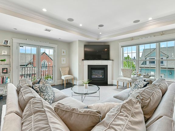 Located on the desirable East side, this turn-key home offers one level living with an open concept floor plan. The large living area features beautiful hardwood flooring, great light, a gas fireplace and French doors opening to a Juliet balcony, perfect for entertaining. The Chef's kitchen has an expansive island that easily accommodates 5 stools, a 5 burner gas Bertazzoni range, Bosch dishwasher, wine fridge and ample Shaker style cabinetry. The large primary bedroom has a walk-in closet and en-suite bath with a marble tiled steam shower. The second bedroom is generous in proportion and has a large closet. The second bath features a glass enclosed jetted bathtub. The private deck sits high above the surrounding buildings and offers wonderful views of the JFK Library. The full sized in-unit washer and dryer are conveniently located off of the kitchen area, and there is deeded storage in the basement. Two full parking spaces and shared guest parking complete this unique offering