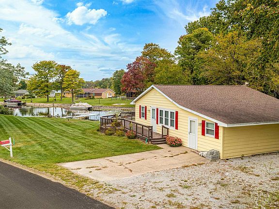 Large 3 bedroom 1 1/2 bath home situated on almost 1/2 an acre with 200ft. of frontage on the channel of Dallas Lake. Home has neutral décor and newer vinyl flooring throughout. Many new features include: new 28Ft. x 20 Ft. anodized aluminum pier, new air tank for well, Brand new HVAC system and duct work in 2021. One large double door shed and a second storage shed tucked quietly behind shrubs. Home sold with almost all furniture , furnishings and appliances. Home also has a cell phone tower booster installed. There are just a few items that wouldn't remain. Property is agent owned. Dallas lake is on the Indian lakes chain that has 5 connected lakes with 2 of them that are all sport and 3 fishing lakes. Lake was recently stocked and restocked with Walleye. For entertainment there is a drive up or boat up restaurant and bar on the chain. Home is not in a flood plain.