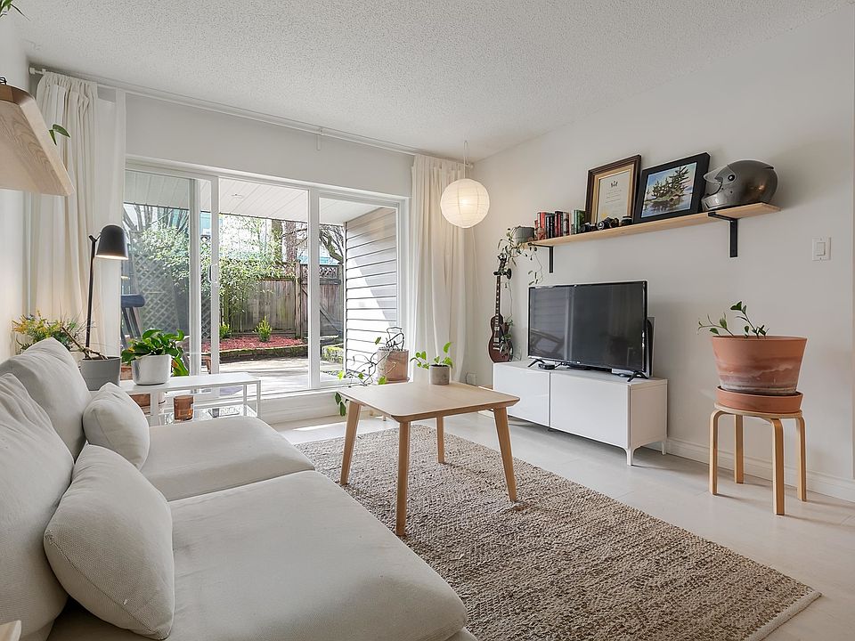 Mount Pleasant Patio Lovers: A must-see! This quiet & charming home offers the perfect blend of indoor comfort & outdoor space. This well-maintained suite features new wide-plank oak engineered flooring, in-suite laundry, generously sized primary bedroom, tons of storage & move-in ready! Step outside to over 600 sqft west-facing, private & fully-fenced yard—a rare find! Complete with a large wood deck, garden beds, and a concrete patio, it's ideal for entertaining, gardening, or simply unwinding. Located on a peaceful, tree-lined street in a well-managed building w/updated windows, roof, vinyl siding & balconies. Walk to local breweries, restaurants, parks, Emily Carr, VCC, SkyTrain, & 99 B-Line, plus great bike access. Parking/storage, Pets/rentals allowed. Open House Sun April 13: 2-4PM
