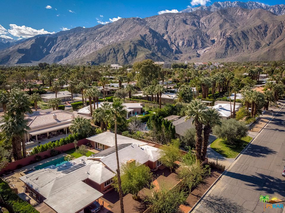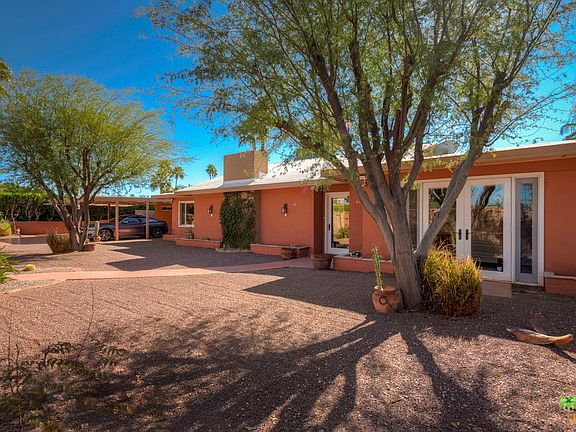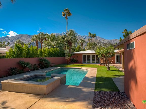This OASIS RETREAT awaits you in the beautiful El Mirador neighborhood! A gated compound with easy to care for landscaping, spectacular mountain views and a stunning back yard is an entertainers dream all within a short drive or walk to Palm Springs Uptown, Downtown and Ruth Hardy Park!The 3 bedroom and 3 bath home features a detached Casita with bath which is perfect for rental income and or visiting guests. The Interior features a spacious Master suite with French Doors opening up to the pool area. Third bedroom is light and bright with french doors as well. The main living area is highlighted with vaulted ceilings, recessed lighting, large stacking slider doors which open to the beautiful yard and gas fireplace. Kitchen has been updated and has easy open access to living spaces and outdoor entertaining area. Lg Den/Office and Huge Guest Bath as well. This Mid-Century home is solid and has newer roof, newer AC, Solar Panels and the potential to be a modern mini estate.