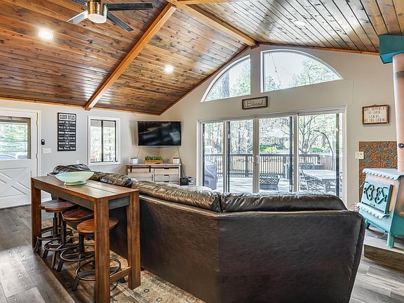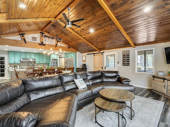 The most exquisite renovated home in Munds park! Designed and renovated by Boss Lady Red herself. Home was renovated with multiple families in mind along with all the comforts of home in the pines. Renovated in early 2018. This home features 2 oversized luxurious master suites. 1 on the main floor and 1 upstairs. Gourmet kitchen is breathtaking with teal cabinets, granite counters, stainless appliance package, 6 burner gas cooktop, double ovens and a 6ft wide fridge/freezer. The living areas flow from the kitchen to the dining into the great room and out through the massive slider onto the front deck. Great room features vaulted beamed/tongue and groove ceilings and laminate wood plank flooring. 1/2 bath and laundry both downstairs. Den/bedroom just behind the kitchen perfect for small