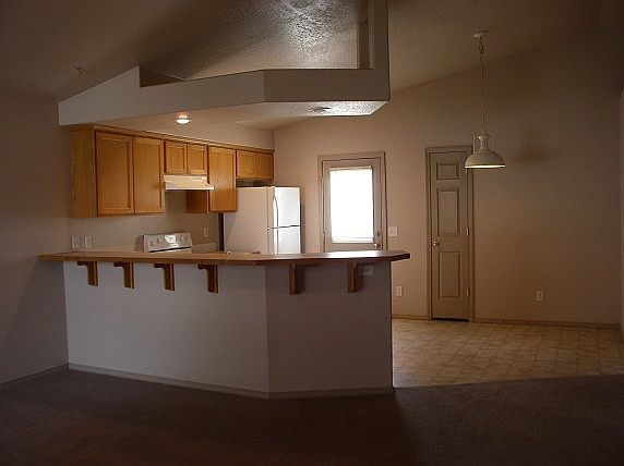 Split Floor Plan - This 3 BD/2 BA, 1100 sq ft home is located in Nampa near South Middle School. Amenities include a living room with celing fan and vaulted ceilings, a kitchen with a large breakfast bar, plant shelves, dishwasher, disposal, stove, fridge, space for a table, and a door leading to a south-facing private patio. The master bedroom is on the right with 2 large closets, and a bathroom with a tub/shower combo. On the left there is another bathroom with a tub/shower combo, between two smaller bedrooms. The home also offers washer and dryer hookups, air conditioning, and a two car garage!