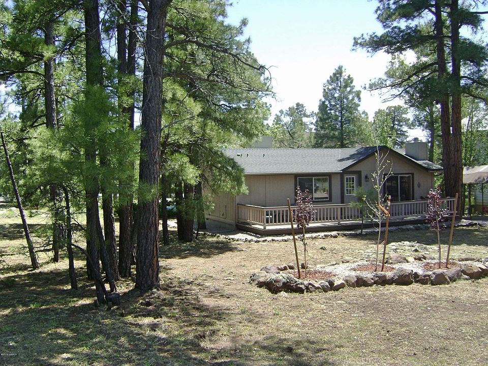 Charming Mountain Retreat tucked away on a large corner lot with plenty of trees. One level of living includes 2 bedrooms and 2 baths, and large 14 x 16 Arizona Room that is not reflected in the home square footage. Master bedroom with shower. Living room wood burning fireplace. Large kitchen with newer cabinets and pull out drawers. T&G wood and ceiling in the Arizona Room. Large deck affords plenty of room for outdoor entertaining. New exterior paint, New Stainless Appliances, New laminate flooring, New interior paint and new laminate flooring. New ceiling fans, New vanities, & faucets. Comes with a One Year Home Warranty.