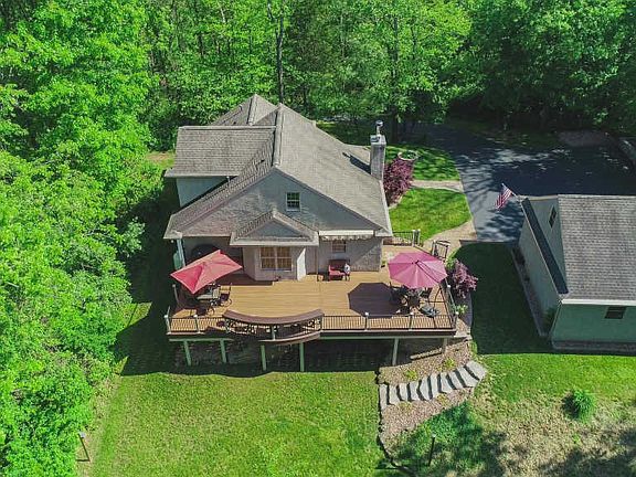 This home is an absolute must see! Welcome to this well maintained beauty situated on 3.4 wooded acres. This completely landscaped home boasts an open floor plan. Your feet will carry you over a warm walkway to a welcoming front porch flanked by beautiful landscaping. Once inside, you will be greeted by a cozy living room featuring vaulted ceilings, a gas fireplace and beautiful flooring. The living room opens into the eat-in kitchen with its custom cabinetry, quartz countertops and island with built-in range. The main level is where you will also find the master bedroom with a walk-in closet and luxury master bathroom with custom marble and glass shower with a separate soaking tub. The second bedroom and second full bathroom are also on the main level. Upstairs, you will find a spacious third bedroom and another full bath as well as a loft area. The daylight basement is fully finished with a 9' custom drop ceiling and the floors are covered in beautiful bamboo hardwood. The custom wet bar is the focal point of this gorgeous family space. The 732 Sq. Ft.. custom Trex deck features a curved bar top and includes 5 barstools which overlook the peaceful wooded surroundings. Awesome oversized 2-car detached garage with great second floor storage. Enjoy efficient radiant floor heat, central vacuum system, gutter helmet and 2x6 construction. All of this located just minutes from the turnpike for easy access south and east.