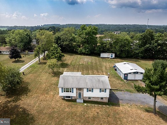 Littlestown split foyer on just over 2 acres at the MD/PA line. You will love relaxing on the rear covered deck. Store your vehicles and toys in the large oversized building. Building is heated and has a concrete floor. The current owner built and a stocked a pond. Inside you'll have 3 bedrooms and 1 bath on main level w/ kitchen, dining area and living room. Lower level has a 4th bedroom with a nice big window( no closet). Laundry, full bath and huge rec room await your finishing touches. Long tree lined driveway, mostly level yard with mature shade trees and fruit trees. Minutes to Rt 97 or Rt 194 to go into MD. Please do not enter the property without an appointment. Showing restrictions apply.