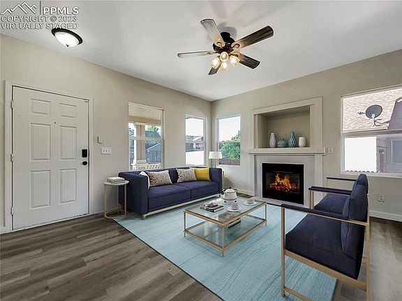 This charming home is the perfect place to settle down and create a lifetime of memories. The natural color palette and fresh interior paint create a warm and inviting atmosphere. The home features a wood-burning fireplace and other rooms for flexible living space. The primary bathroom is equipped with double sinks and good under sink storage. Enjoy the outdoors in the fenced in backyard with a sitting area for relaxation. This home has everything you need to make it your own. Come take a look today and start living the life you've always dreamed of! This home has been virtually staged to illustrate its potential. Thanks for viewing!