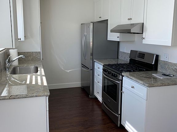 Beautiful 2 bedroom 1 bath recently remodeled, very clean, large balcony, w/d hookups in garage, dishwasher, refrigerator, granite countertops, plank wood floors, great location, some pets considered $20/adult for water/trash/sewer