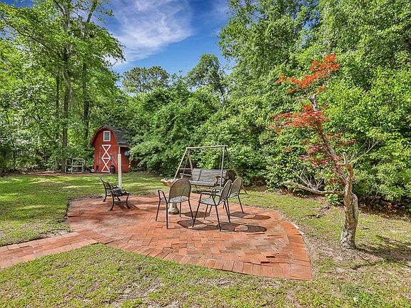 Charming home situated on oversized lot nestled in oak trees .This lot affords privacy and space! Entry Foyer, Hall closet, wood floor, Ceiling fan, Living Room, has wood Laminate flooring through the Formal Dining room,built in china cabinet, Kitchen with Stainless Steel Appliances built in Microwave, Stove, Smooth top range, Porcelain sink, Built in China Cabinet, Family Room with Brick Fireplace wall to wall brick. Laundry Room, 4th Bedroom or flex room, Master Bedroom has single vanity, shower stall, Ceiling fans . HVAC 2 yrs old, Water heater 4 yrs old, Roof 13 yrs old, Hot water heater 8 yrs old, New windows across the front Dec 2023. Fenced back yard, Garden area, gutters, out building for storage.