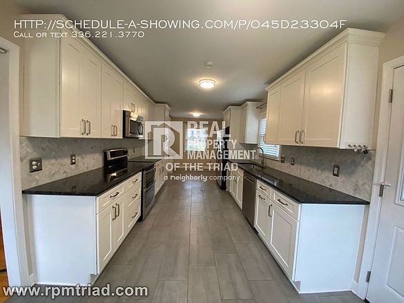 Remodeled 4 Bedroom, 3 Bath Ranch style home with a fenced yard! Custom stone patio and landscaping that sits on a dead-end street with the property line backing up to Guilford College woods! Main level has 3 bedrooms, 2 bathrooms, a renovated kitchen, living area plus a dining room! Appliances include a fridge, stove/range, dishwasher & built in microwave! Lower level features the WOW factor of this house with an additional kitchen, bathroom, bedroom, and large family room perfect for entertaining! Hardwood floors throughout main level and wood laminate downstairs with spacious room sizes! Walk-up attic for even more storage, recent replacement windows, and a spacious workshop not included in heated square footage! Pre-wired for 1000mgps fiber internet service through AT&T. This home is a must see in a wonderful location!. 24 Month Lease, Security Deposit and Lease Administration fee applies. AVOID RENTAL SCAMS: Real Property Management is a licensed Real Estate Agency that exclusively markets and represents this listing. We do not advertise on Craigslist. We would never ask you to wire money, request funds through a payment app for initial rent, deposits, or take the key after your showing to move-in. Entertainment Space. Finished Basement. Fresh Paint. Landscaped Backyard. Wood Floors. Workshop