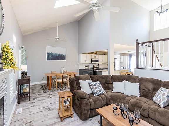 Newly renovated open floor plan on a quiet cul-de-sac. Open kitchen is fit for a chef. New granite countertops, backsplash & appliances. Ceramic flooring runs through large great room, gas log fireplace and skylight. 1st floor primary suite w/deluxe whirlpool bathtub, double sink vanity and walk in closet. Nice sized bedrooms on 2nd floor with jack and jill bathroom, finished lower level with plenty of storage space. Nice size fenced in backyard to enjoy cookouts and more. This is a must see!