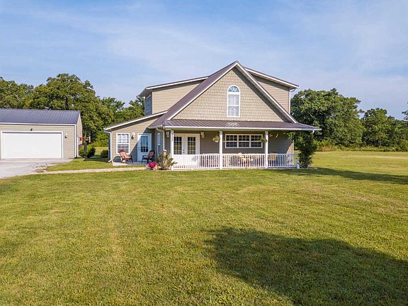 The home you have been searching for is now ready for you. Minutes to the Famous Branson landing and yet tucked away with one of the most flat and completely cleared 6 acres in the Ozarks and surrounded by the beauty of the Ozarks trees, at the end of a Cul-De-Sac within walkable distance of Bull Shoals Lake. Owners have taken pride in building this custom three bedroom home built in country-cottage style with a three-car detached garage. Step inside to an inviting foyer from the shade of the front porch perfect for morning coffee and watching the deer play. Main level features a sunroom with Heat and Air, over-sized mudroom, master ensuite with walk-in closet, living room and custom kitchen with all appliances included. Upstairs find two bedrooms with ensuites and a sitting room to study, play games or just unwind after a long day. Outdoor space abounds. Come for a tour and stay for a lifetime.