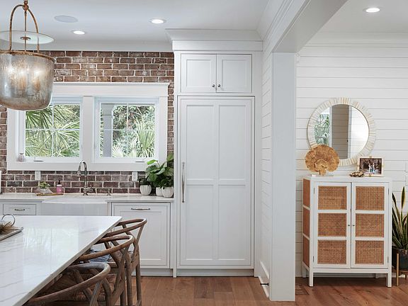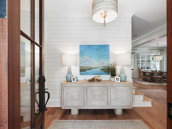 Welcome to 825 Marsh Grove Avenue - a stunning 3,000sqft, 5-bedroom, 3-bathroom home located in a quiet, private neighborhood in the heart of Old Mount Pleasant. Thoughtfully redesigned inside and out, every square inch of this home has been curated for comfortable everyday living and effortless entertaining.Step inside to a bright and airy main living space, where custom shiplap walls add a charming coastal feel. The open-concept chef's kitchen is truly the heart of the home, anchored by a spacious island perfect for casual meals and lively conversation. It features top-of-the-line appliances including a Wolf range, an oversized Sub-Zero refrigerator, a Shaw farmhouse sink, a filtered bar sink, Sub-Zero wine fridge, and a coveted Scotsman ice maker - a crowd favorite!Music and entertainment are seamlessly integrated with hard-wired speakers throughout the main floor, creating the perfect backdrop for gatherings. The kitchen flows into the dining and living areas, offering an immaculate indoor entertaining space. But the outdoor living is just as impressive. The large screened-in porch features a vaulted ceiling lounge area and a separate nook for alfresco dining, all overlooking a serene pond and swaying palm trees. Relax and listen to the rain on the metal roof, or head to the custom outdoor kitchen and bar - ideal for grilling and watching the game. The turfed backyard is a true retreat with a putting green, treehouse, firepit, and oyster shed, offering fun for all ages. The newly redone brick-lined driveway leads to a spacious 3-car garage with plenty of room for boats, golf carts, bikes, and beach gear. It's also a great space for shooting hoops, playing pickleball, or letting the kids ride scooters. Additional storage throughout the garage keeps coolers, beach carts, and tools neatly tucked away. Professionally landscaped and lined with palm trees, the yard offers privacy and easy maintenance, while evening tree lighting adds magical ambiance. After a beach day, rinse off in the brand-new outdoor shower before heading inside. Upstairs, the spacious primary suite is a private sanctuary with vaulted ceilings, a wall of windows, and a small standing porch that fills the space with natural light. The en-suite bath features dual vanities, a walk-in shower, and a luxurious Bain Ultra soaking tub. Step into the custom-designed walk-in closet with built-ins galore - jewelry drawers, a pull-out ironing board, belt and tie racks, and generous counter space. Three additional bedrooms are also upstairs, each with plantation shutters, custom closets, and wide-plank oak floors. The fifth bedroom is located downstairs, tucked away behind the main living space, adjacent to a full bath - ideal as a guest suite, office, or playroom. It also features a custom closet and plenty of natural light. The mudroom/laundry area is highly functional, designed for folding, hanging, and organizing laundry, backpacks, sports gear, beach towels, and more. Additional storage options include a large coat closet by the beautiful mahogany double front doors, a generous walk-in linen closet, and a pull-down stand-up attic. Saltgrass Pointe is a hidden gem within Old Mount Pleasant, an intimate neighborhood with tree-lined sidewalks, a charming community space overlooking the marsh, and seasonal neighborhood gatherings. With no cut-through traffic and a sidewalk connection to another nearby neighborhood, it's a safe haven for children. Plus, it's bikeable to Mount Pleasant Academy and Moultrie Middle School, both top-rated public schools. Take full advantage of the coveted Old Village lifestyle walk, bike, or hop on your golf cart to the Pitt Street Bridge, local restaurants, boutiques, parks, dog runs, and tennis courts. This home is truly turnkey, an entertainer's dream, and a rare opportunity in one of Mount Pleasant's most sought-after communities. Come see it for yourself!