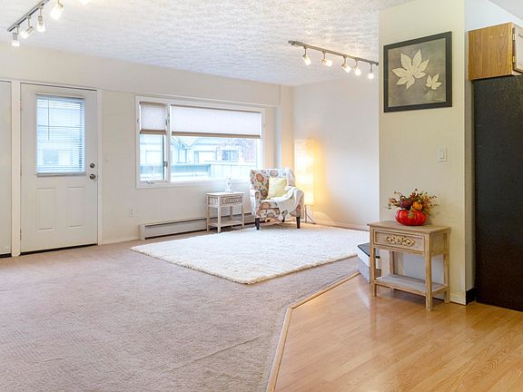Sunny and bright townhouse condo with southern exposure on front deck - fireplace, updated kitchen. Downstairs is two bedrooms and bath, large master br upstairs. Refrigerator, washer/dryer will stay, heated two car garage. New boiler installed in 2017.