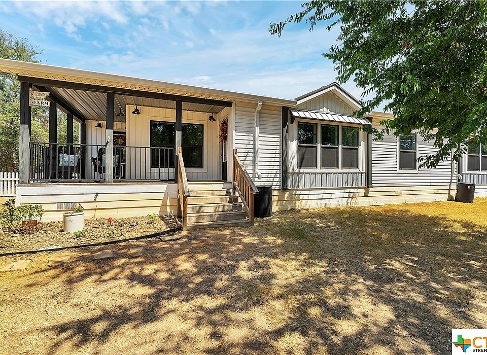 This one owner farmhouse-style home built in 2019 sits on almost 4 acres of peace and tranquility. The yard around the house is bordered by a precious picket fence with plenty of room for friends, family and four legged friends (of all types). Beyond that, two sides of the property perimeter are bordered with barbed wire fencing. You'll enjoy no restrictions and a 1000 gallon water catchment system. In the kitchen, take advantage of the tall kitchen cabinets for plenty of storage, a refrigerator that will stay with the property and a smart thermostat. Starlink Internet is available. Come enjoy country living with quick access to I-10 and 130 for easy access to Austin, San Antonio and points in between.