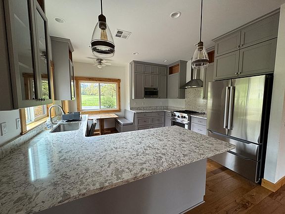 High quality home built in 2017 with incredible views, this is likely the nicest house and property rental on the market in Grants Pass. Conveniently located 10 mins from town and 2 mins from Hidden Valley Market and the post office. Features: - High speed fiber (1gb) internet (included) - Whole house generator has a whole house generator - Central heat / ac - New gas fireplace - New french door refridgerator - Hickory floors and hardwood trim - The driveway has a gated entry - Covered timber patio in back yard with fan, positioned to be perfect in the summer months. - Landscaping is irrigated. Primary suite features a very large walk-in closet, large bathroom with shower and double sink vanity. Suite also has an attached office space. Second bedroom is large, carpeted, with ample closet space. Second large bathroom includes a tub. Kitchen has a new refrigerator, BlueStar gas range, Bosch dishwasher, microwave, dual basin sink with disposal, peninsula with bar seating, custom cabinets with ample storage, and a built in breakfast nook. Oversized walk in pantry. Two car garage with a small climate controlled work space in the back. Currently there is a storage space built out into one of the parking bays, leaving about a half of the bay open. The house is located on a 6 acre property, has a small pond and fruit trees right out the door. The owner also lives on the same property, the driveway is shared. There is a large organic lavender field situated behind the property owners home, on the opposite end of the property from the rental house. - 6 month lease, month to month thereafter. - Must keep property and house well kept & clean - No smoking/vaping - Small pet ok with approval - Washer/Dryer hookups, currently washer/dryer to be supplied by tenant - Owner pays for trash / recycling pickup - Owner pays for high speed fiber internet - Owner pays for landscaping / yard care - Owner upkeeps softened water system