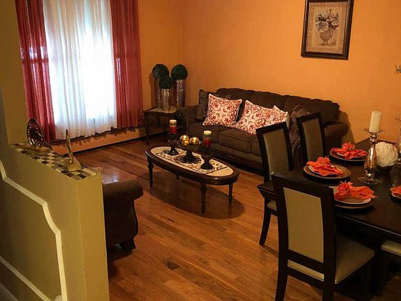 Unique spacious home that could provide individual room for anyone. Enter a foyer to find a large formal living room to the left with new flooring, and an updated kitchen to the right. Kitchen has granite counter tops and an island that can be used to eat or for additional cooking space. Plenty of kitchen cabinets and a beautiful flooring decors the formal kitchen. Keep going through the hallway to find three private bedrooms and a full bathroom. The last room is the master bedroom with a full bathroom. Towards the back of the house you can find another foyer that leads to beautiful room with skylights, that can easily be utilized as family room or as an in-law suite, with an additional kitchen. Exit to the terrace to find peace and quite, with mature trees, a nice Jacuzzi and an above ground pool. Buyer is welcome to clean the above ground pool to use it before summer ends. Park your vehicles safely on the back that provides two off street parking. The basement has the capacity to be finished since it has plenty of room and high ceilings. You can also find the laundry and an additional half bathroom for your convenience. Take into consideration that sellers need to find suitable housing before selling. Schedule your showing today...