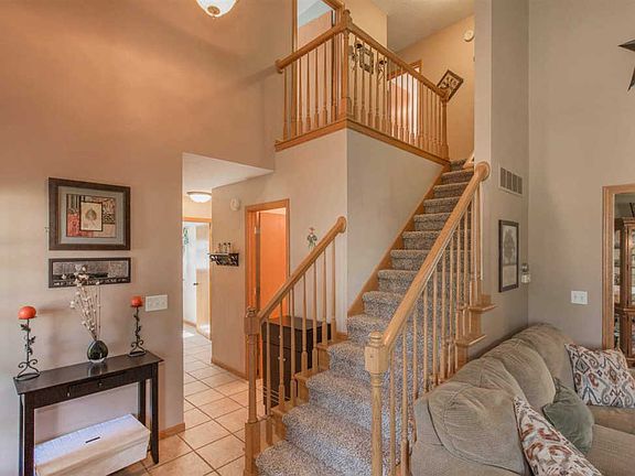 This gorgeous 3 bedroom, 2 1/2 bath features cathedral ceilings in entryway and living room, main floor laundry, brand new carpet in all bedrooms, hall and stairs. The living room features new flooring, a beautiful brick wood burning fireplace and is open to the formal dining room also with new flooring. The eat in kitchen includes fresh paint, built in hutch, work space area and new refrigerator. The large master bedroom features high ceiling, walk in closet and master bath with a double vanity and separate shower/deep jetted tub. The finished basement has lots of extra room for storage with built in shelving and work bench. Roof 2014, refrigerator 2016, water heater, carpet and laminate flooring 2017.