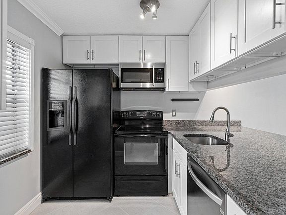 Location! Location! Location! Located in East Boca close to FAU and only minutes to the beach! This turn-key unit is on the 1st floor and has 2 bedrooms, 2 bathrooms, 1,045 SF and is one of the biggest units in the complex. Direct pool access right out your back door! Unit has been freshly painted, renovated with many upgrades including crown molding, baseboards, granite countertops, tile flooring and stainless-steel appliances. Also includes 2 parking spaces. Building has a new roof and siding with more upgrades in the near future. This is a safe, quiet community with friendly neighbors and ''A'' rated schools; zoned for Addison Mizner, Boca Middle and Boca High Schools. Hurry, as this unit won't last!