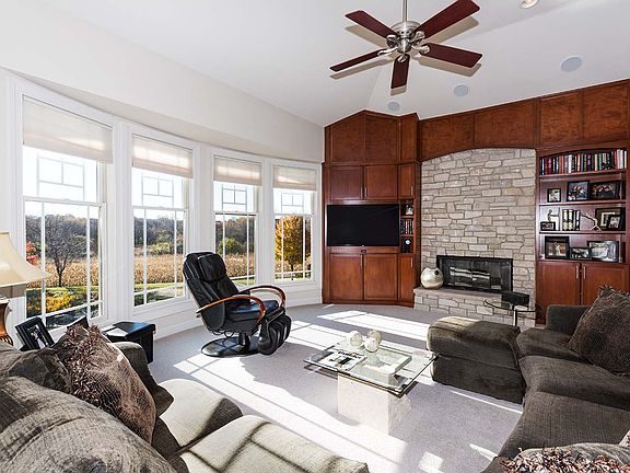 STUNNING ESTATE Built by Oehlberg Construction. Inspired stone and cedar exposed ranch, 5500+ Sq Footage of views overlooking private stocked pond or in-ground swimming pool w 800 sq foot pool house. Situated on 2.14 acre cul-de-sac lot with circular driveway, and a separate driveway to end loading garage. Kraft-maid cherry stained cabinetry, center island, curved breakfast bar, granite counter tops, stainless steel hood vent. This home has many amenities, to list a few. Lighted crown molding, stone wall & columns, built in desk in den, volume ceilings, 2 stone faced gas fireplaces w/built in entertainment center, walls of windows in many areas. Master suite with sitting area w/patio doors to deck, double vanity, curved glass block shower, whirlpool, walk-in closet/dressing area, w/many built ins. Full wet bar with granite counter tops. Lower level sun room walks out to pool & patio. Pool house w/cathedral ceiling, built in entertainment center, full bath & dressing area. LOW TAX RATE. AGENT RELATED