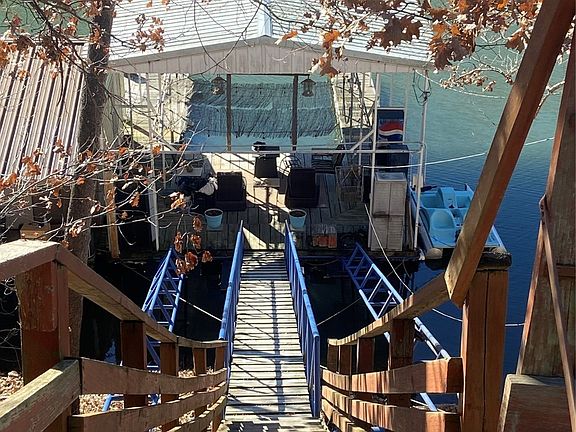 So You Want A Cabin on the Lake? This ''floating cabin'' is in mint condition and tastefully designed. Several outdoor areas to enjoy the lake /both covered and uncovered areas and large boat dock designed for house boat. Great areas for grilling, sitting by a firepit, great for fishing and swimming in deep water cove. Open living space w/dining area, living, kitchen with dining counter, Viking stove, Stainless refrigerator and microwave. The cabin has 2 sink vanity, double headed shower, laundry area, and access to private deck from bedroom. The lot is suitable to build another home/garage or additional cabins. 291' of shoreline. So if you are looking for your own place to chill or as an investment take a look at this unique property then call for tour.