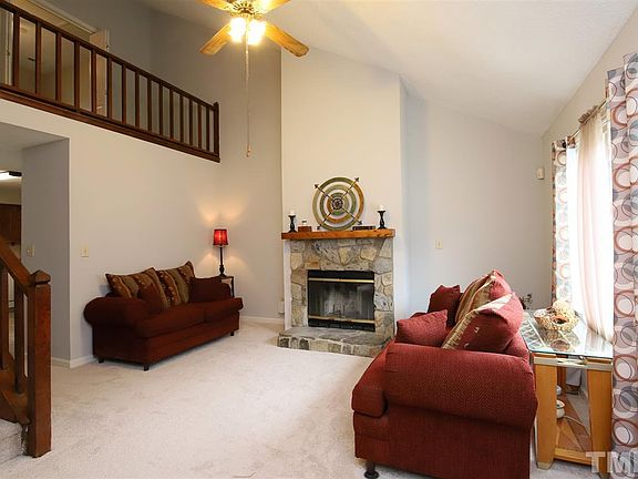 This home is ready for its next family to make it theirs. The back deck offers peace and privacy. Great floor plan with two masters, one upstairs and one down. Third bedroom comes with the sweetest loft overlooking the vaulted family room. Beautiful stone surround wood burning fireplace in family room. New roof 2019 and new carpet 2020. Convenient to downtown Raleigh, I-440 and Walnut Creek Amphitheatre.
