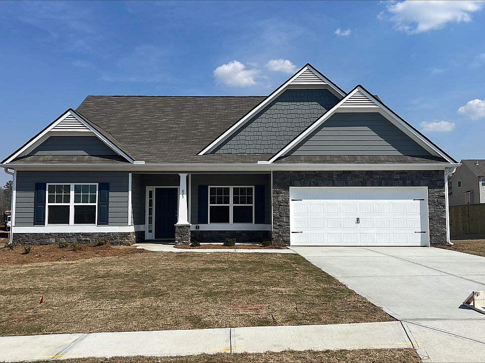 CREEKSIDE LANDING ****Our Charming Ready and Available RICHMOND RANCH is loaded with lots of upgrade option on one level. Large inviting porch, large long foyer. One side is the large Master bedroom w/ 5' tile shower and large walk-in closet. Inviting living room, Separate Dining Room that can seat 12 and Kitchen. Opposite of the Master bedroom is 3 secondary bedrooms w/ hall bathroom. Outdoor Stone Woodburning Fireplace.