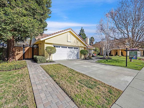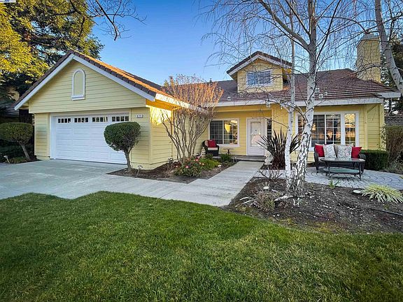 This meticulously maintained gem boasts delightful curb appeal, functional floor plan, and vaulted ceilings in nearly every room, creating an airy, spacious atmosphere. The open-concept design offers a welcoming entry, large living room w/gas fireplace and windows that overlook the front landscape, and dining area. The kitchen seamlessly connects to the family room, both with delightful backyard views. A culinary dream, the renovated kitchen features custom cabinets w/soft-close drawers and pull-out organizers, granite counters, oversized island w/bar seating, and high-end SS Thermador/KitchenAid appliances-including a 6-burner gas stove, and cozy eat-in breakfast nook. The sizable primary suite showcases a remodeled bathroom w/dual sink marble vanity, soaking tub, separate stall shower, and modern fixtures. Guest bath impresses with a dual-sink vanity, quartz counters, elegant wainscoting, chic tile floors, and gold accents. Additional highlights include hardwood flooring, ceiling fans, and new furnace. Perfect for relaxing and entertaining, the back yard has an oversized patio, cozy, gazebo-shaded living space, BBQ island, tiered retaining wall, lush grass area, and well-laid pathways. Top schools, downtown shopping and restaurants. Easy commute access to 580 Fwy and Hwy 84.