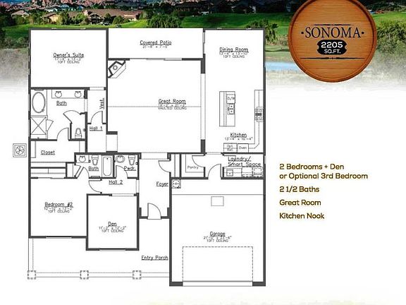 The Sonoma plan provides for gracious living in an open concept including a spacious great room with corner gas fireplace. Home has upgraded kitchen counters and cabinets, stainless steel appliances, 8' interior doors; 2-tone paint, upgraded flooring throughout and much more. Home enlarged via an extended dining room, owner's suite, bedroom 2, den and garage.HOA Amount includes monthly fees for the Club at Prescott Lakes.Estimated completion will be 6 months from start. This is a not yet started spec home, call office for updated completion information.