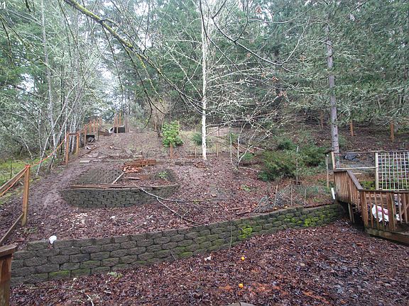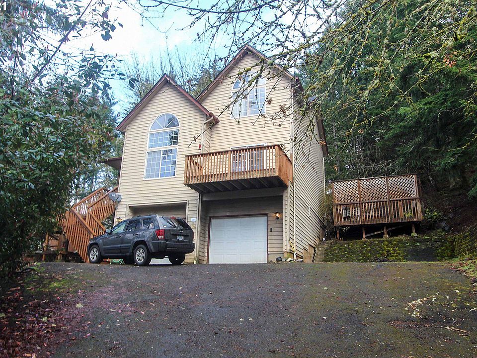 Nice home nestled in the trees. Hardwood floors, lovely vaulted ceilings with great windows and beautiful views. Kitchen has travertine tile & granite counters. Family room has sliding door to front deck with new railing. Front stairs were just rebuilt. Large terraced yard with large deck. Home will need a little work, but has a ton of potential, more photos coming soon. Newer appliances & water heater in 2019.
