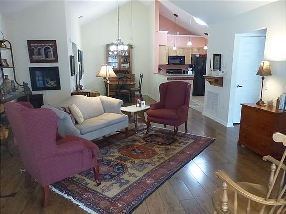 One level plan with volume ceilings, large Florida room, wide planked hardwood floors thruout, two master bdrs. Community clubhouse w/ exercise room and pool! Private lot w lg grassy area & landscape.