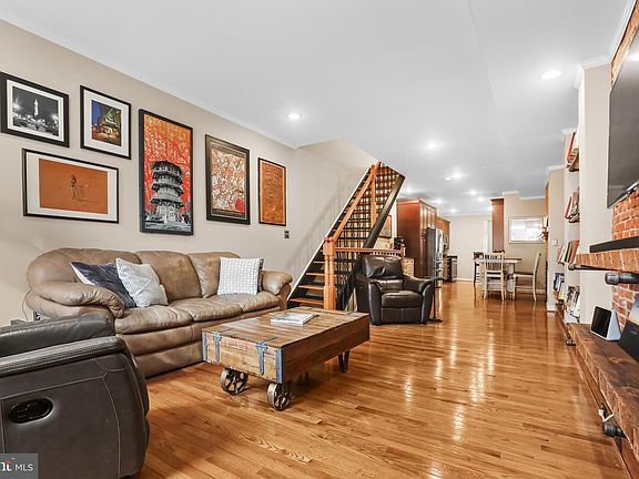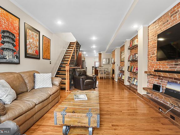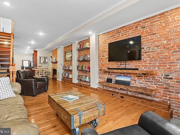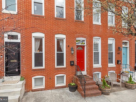 Beautiful 2 bedroom , 2.5 bath Canton rowhome with parking pad and roof deck. Open concept and modern style enhanced by hardwood floors, recessed lighting, exposed brick, and built-in shelving. Gourmet kitchen boasts granite counters, updated stainless steel appliances including gas range, built-in shelving, and island seating. Large light-filled primary bedroom with attached bath with dual vanity and walk-in shower. Upper level is completed with an additional bedroom, full hall bathroom with jetted tub and walk-in shower, and access to double tier composite rear and roof deck. Partially finished lower level and laundry/storage area. Updates include kitchen appliances (June 2023), hot water heater (August 2024), and freshly painted. Great location on tree lined street - just two blocks from Canton square, walking distance to Patterson Park, shopping and restaurants! City living at it's finest - location, parking, and the beautiful views from your very own roof deck!