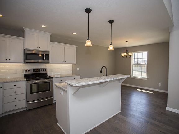 Brand new home in Nixa's Walnut Creek Subdivision. This home is modern with open floor plan and custom built cabinets, stainless appliances, granite counter tops, island and a kitchen bar. Beautiful wood flooring in the kitchen and dining areas. There is a nice covered back patio. High Efficiency HVAC System. Large lot on this home, it sits in the culdesac and has a larger yard, already fenced on one side. Come see!